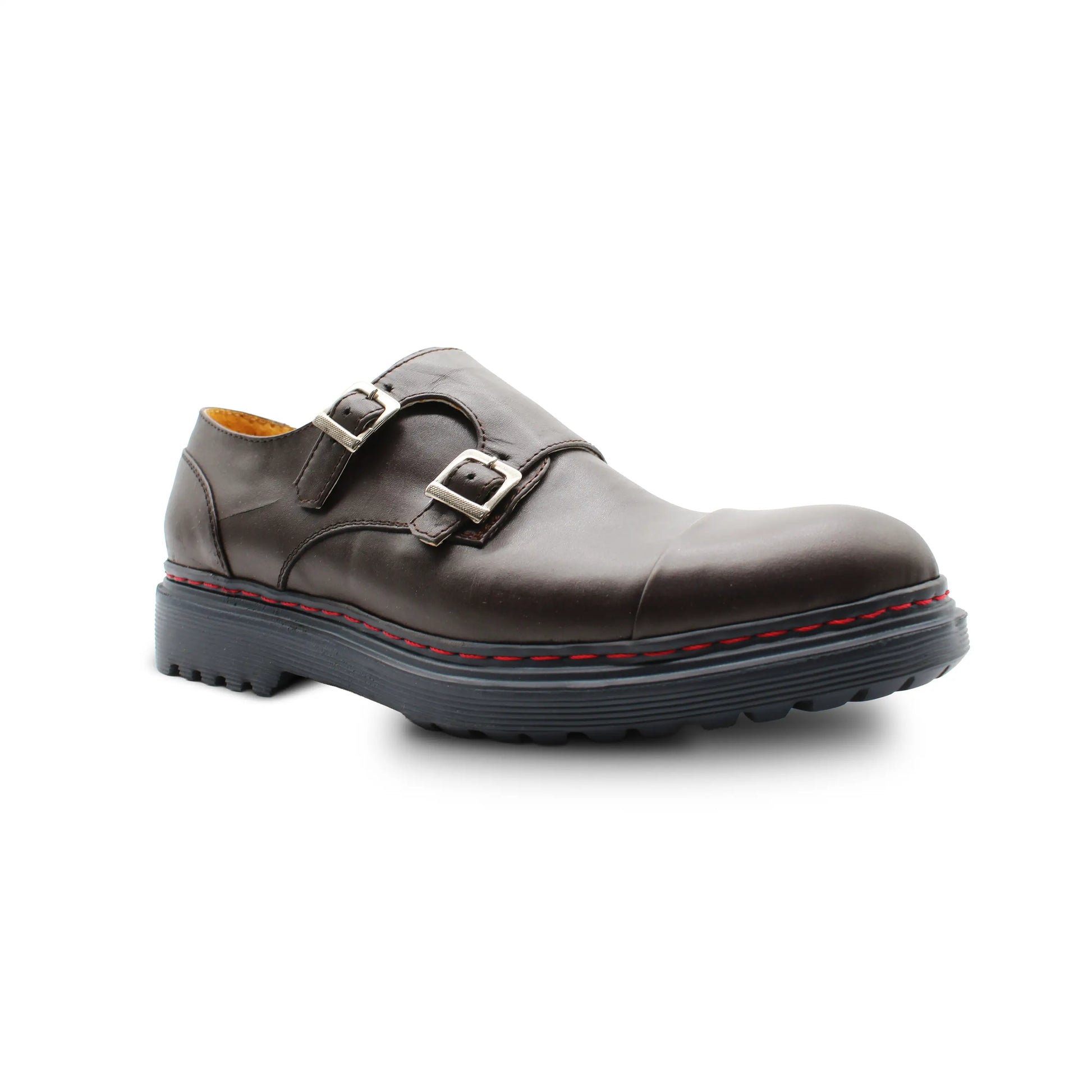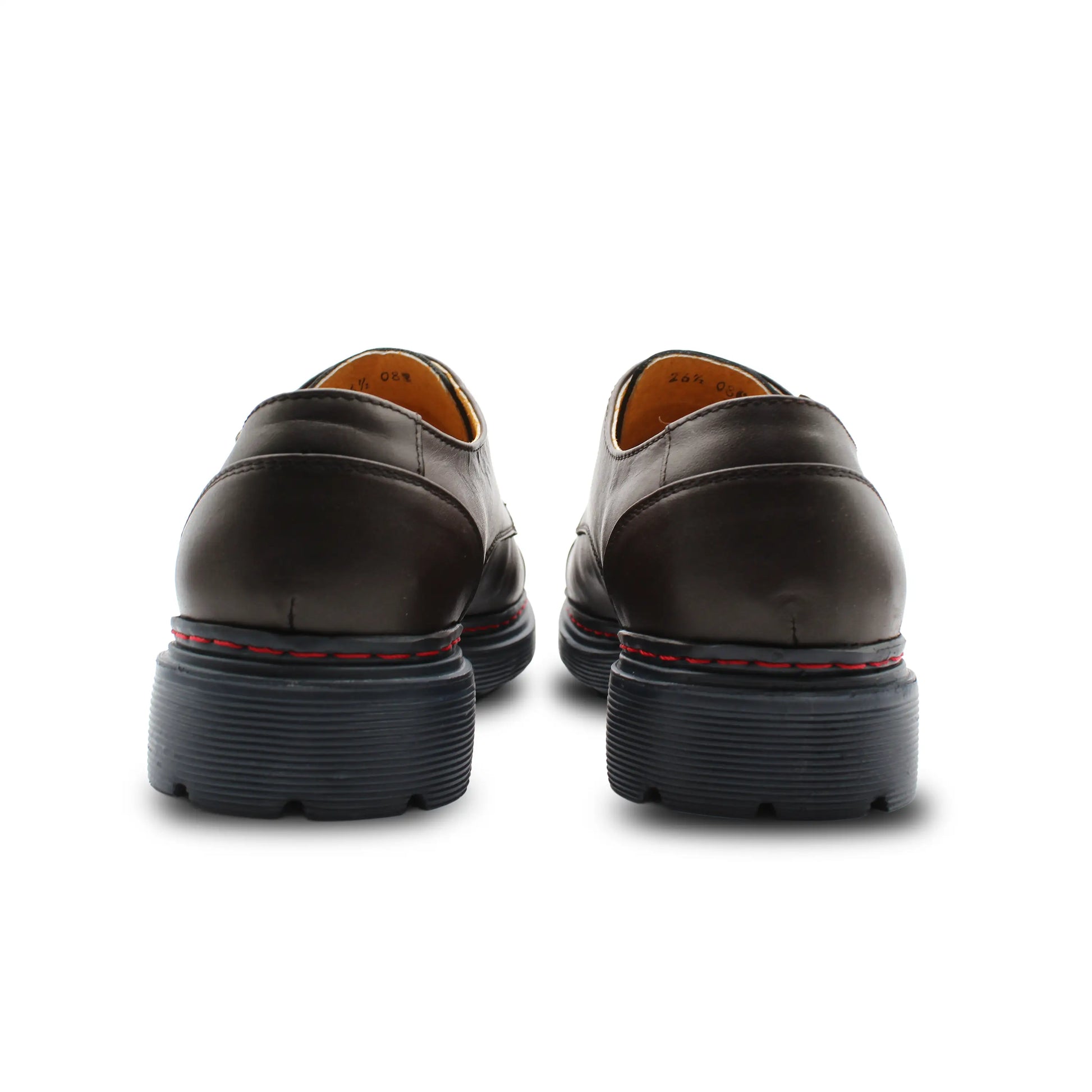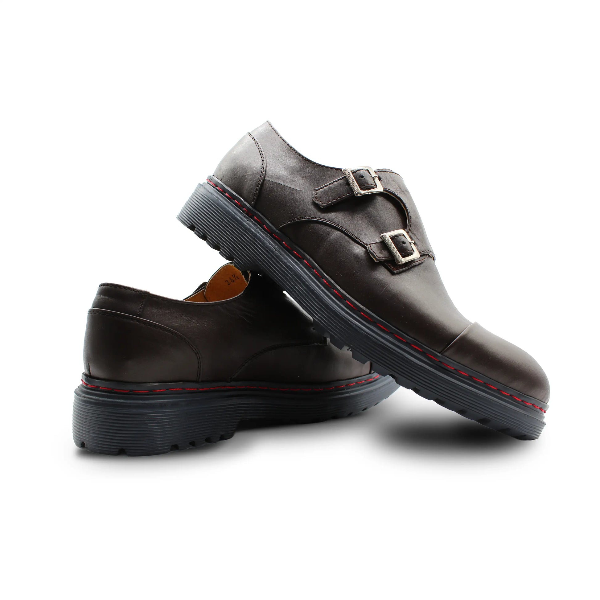Este choclo en piel café chocolate es una expresión de sofisticación relajada. Su diseño sin cordones, acentuado por dos hebillas metálicas, ofrece un ajuste seguro y un estilo que fluye con naturalidad.