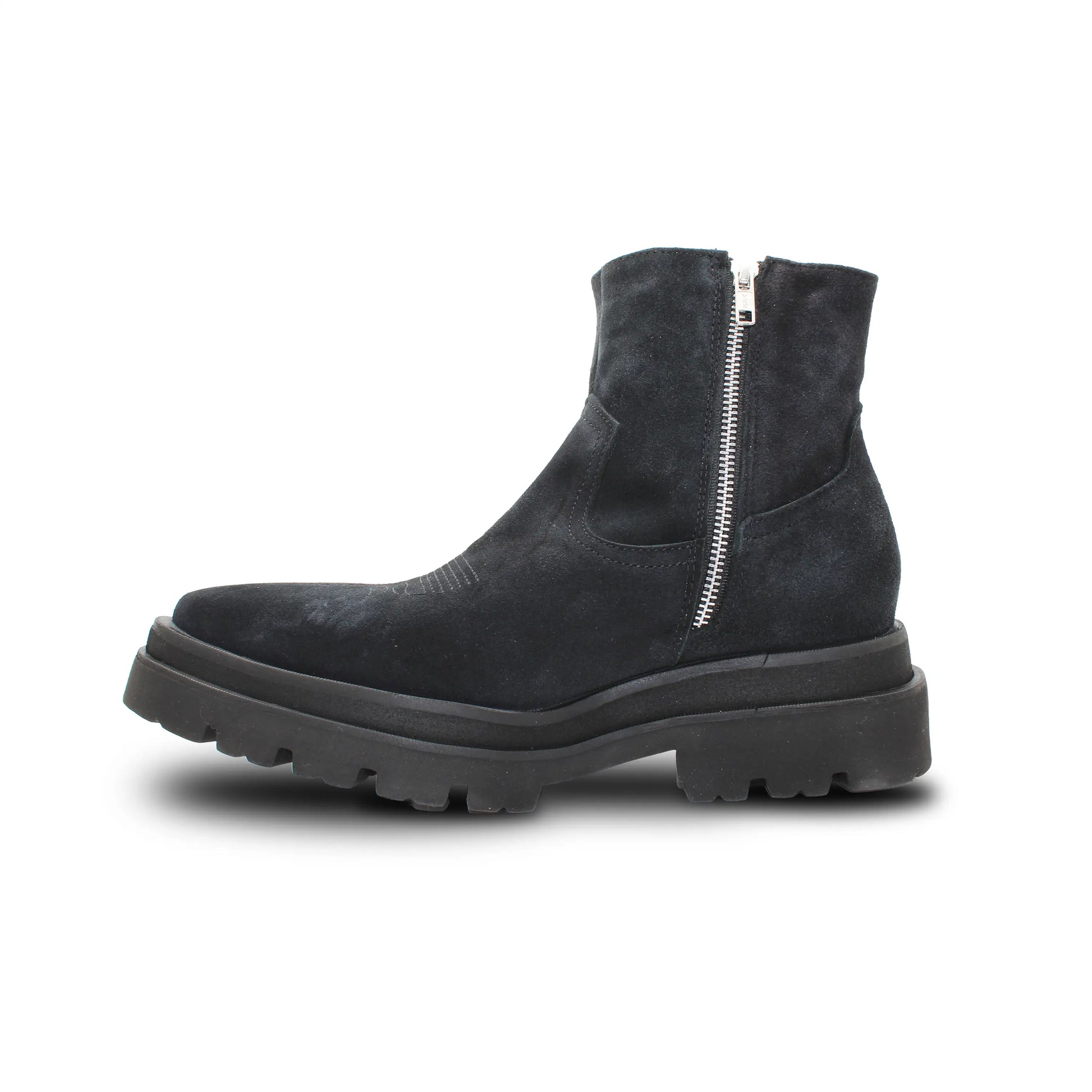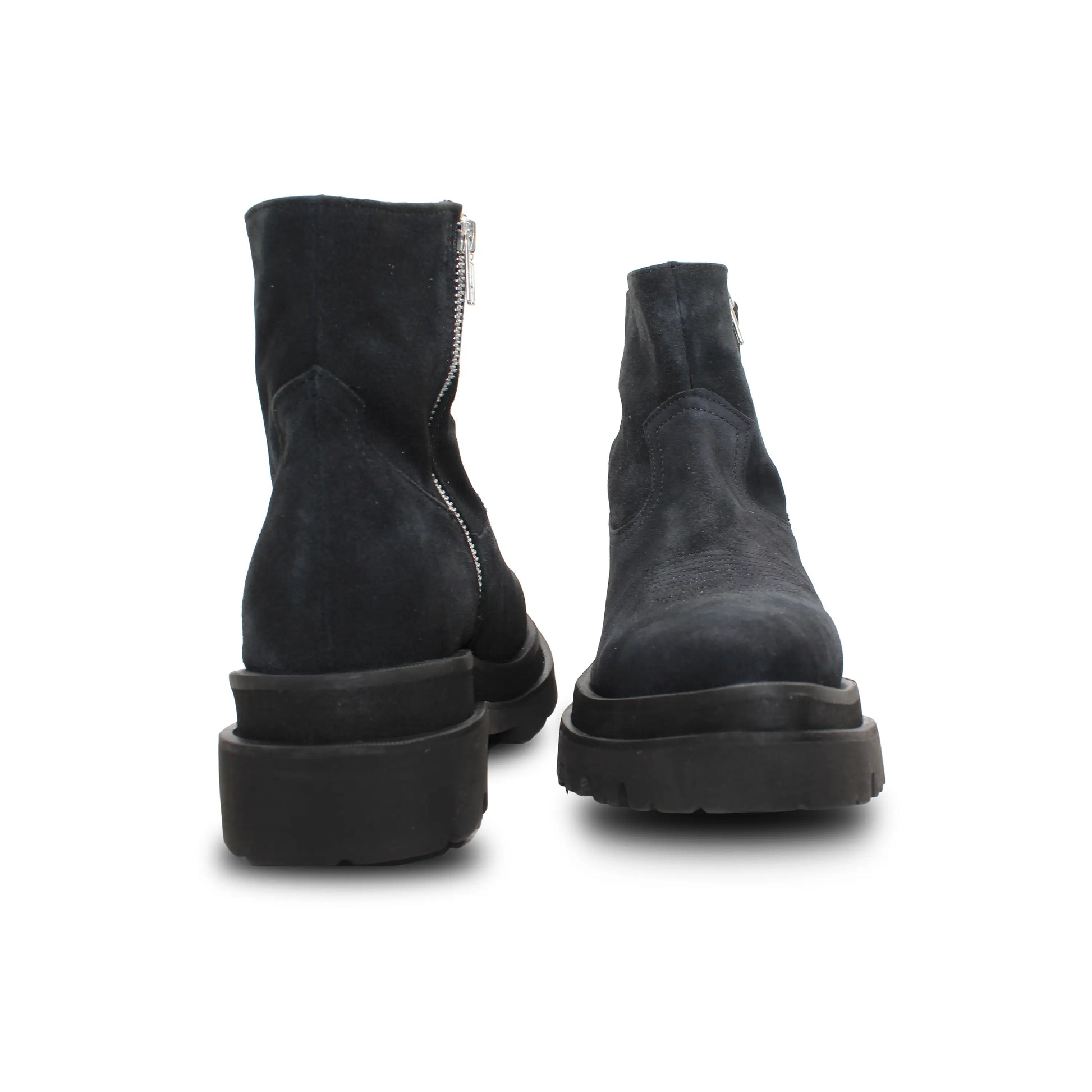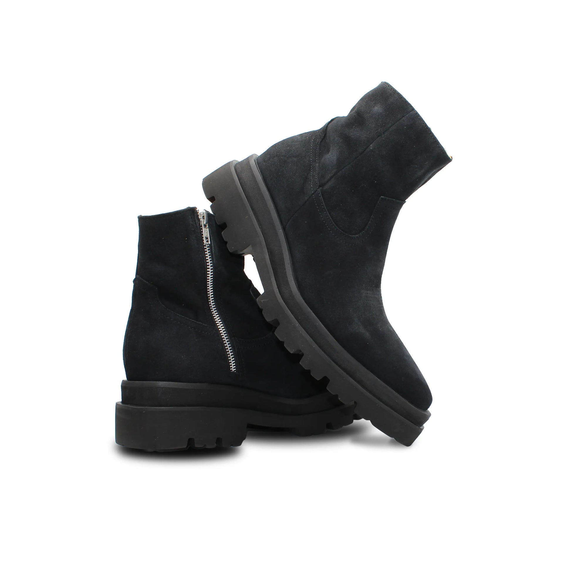 Esta bota en gamuza negra combina sofisticación y rebeldía en una silueta que no pasa desapercibida. Su cierre lateral aporta funcionalidad sin sacrificar estilo, mientras que el forro amarillo ilumina el interior con un guiño inesperado y vibrante.