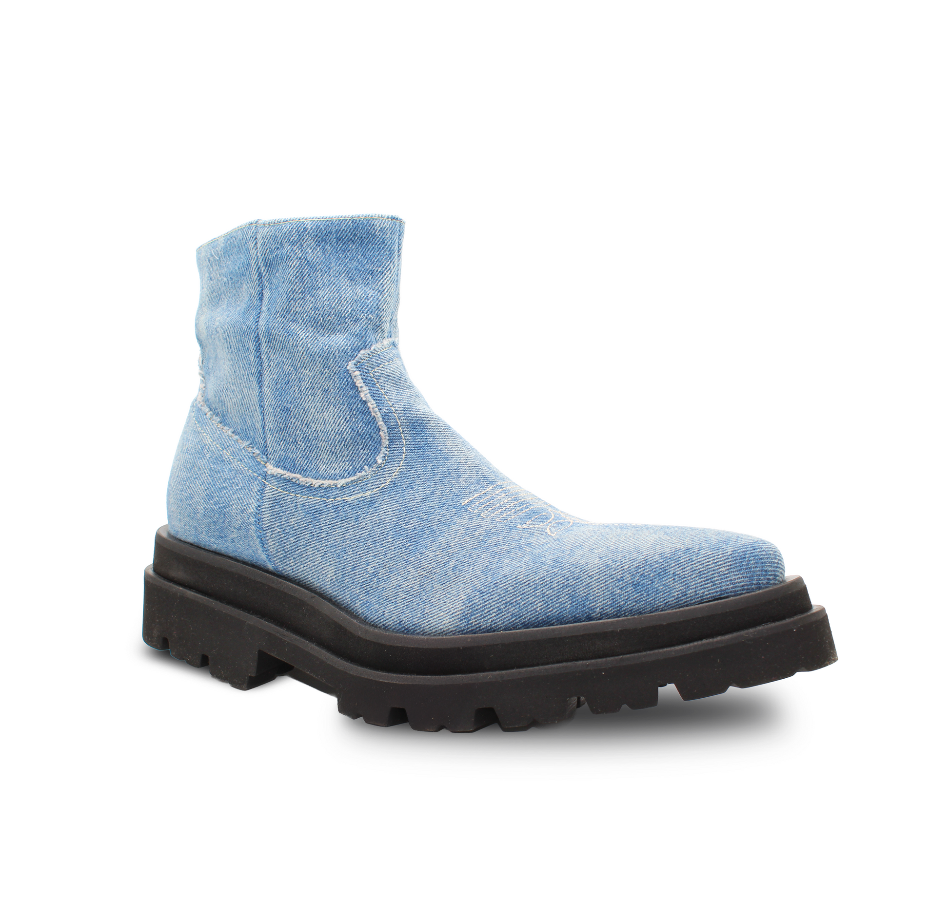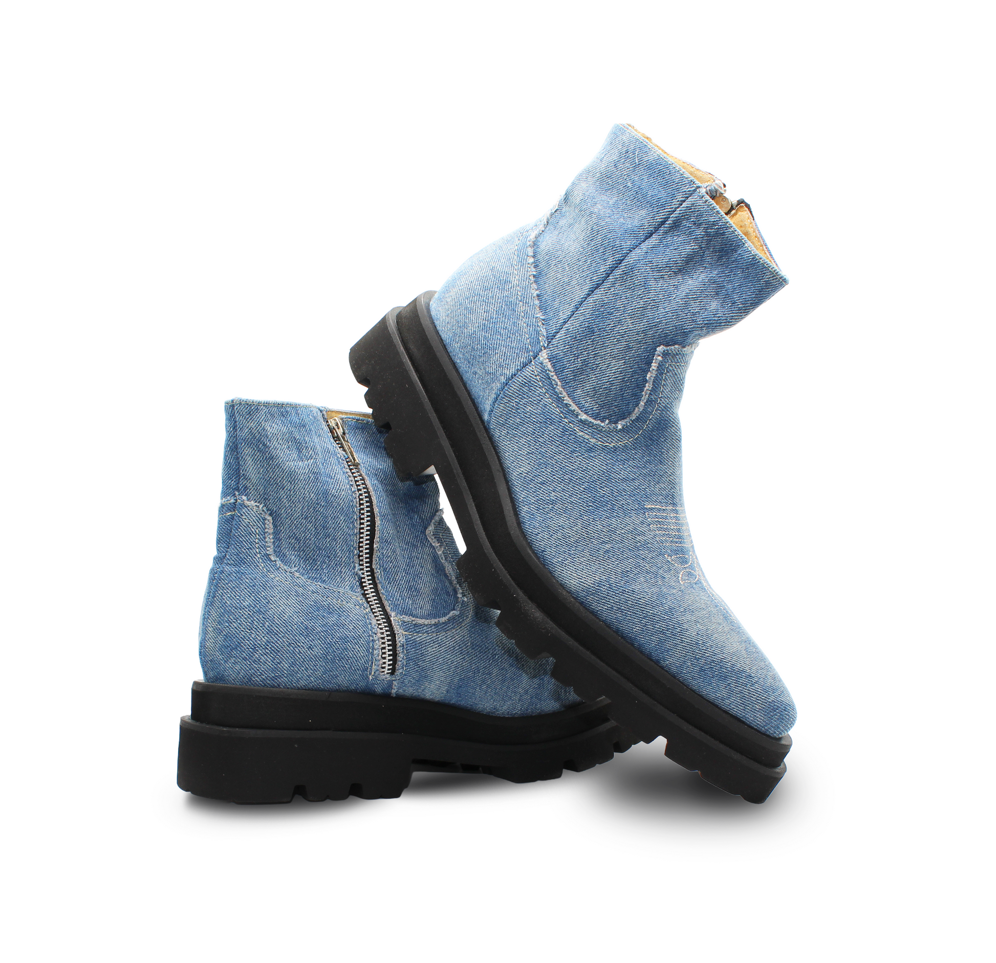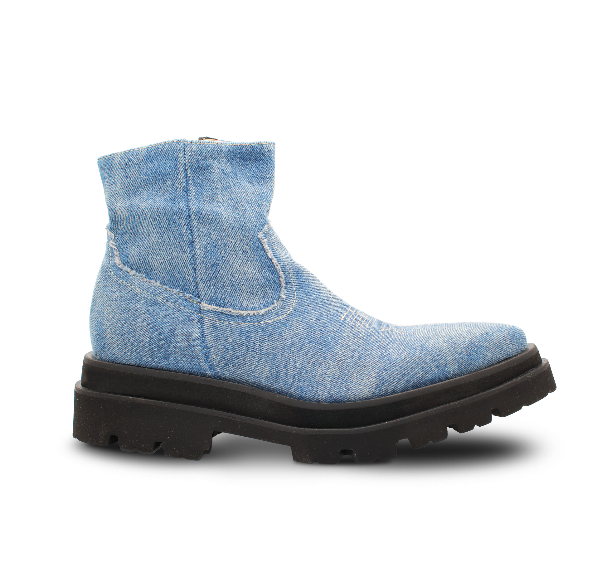 Esta bota estilo country rompe esquemas con una propuesta audaz: mezclilla deslavada que evoca libertad, caminos polvorientos y espíritu rebelde. Su cierre lateral aporta funcionalidad y un toque contemporáneo, mientras que la suela chunky con tecnología ultraligera redefine el confort sin perder carácter.