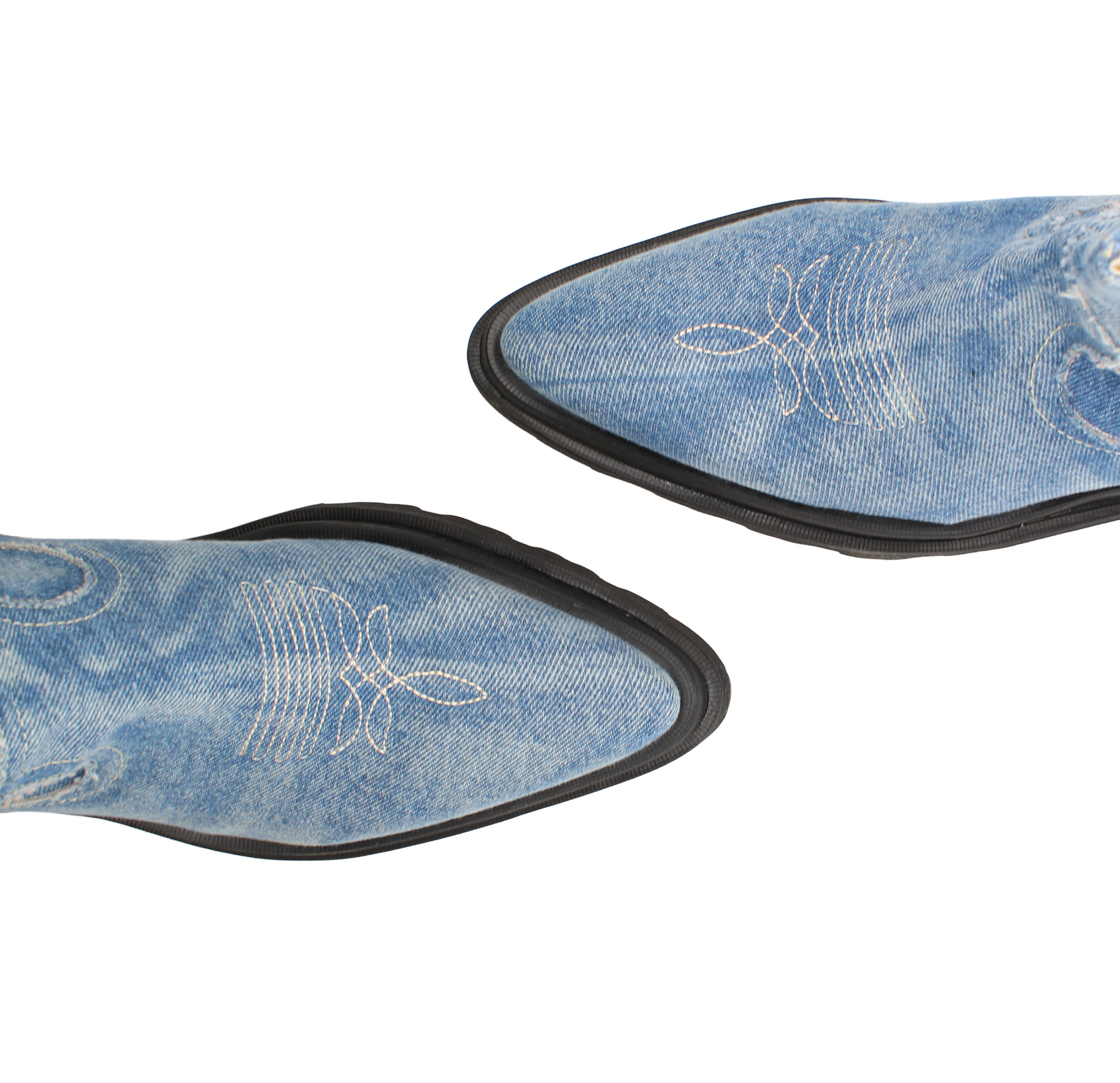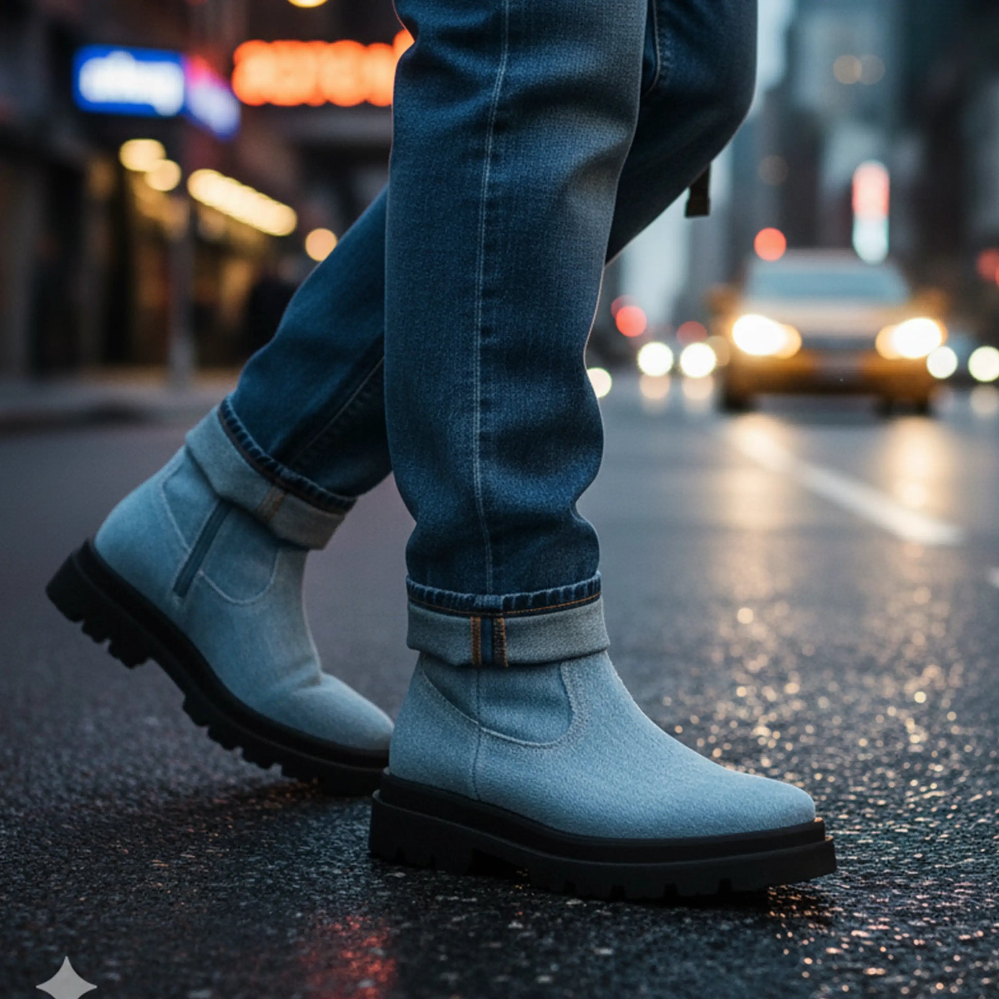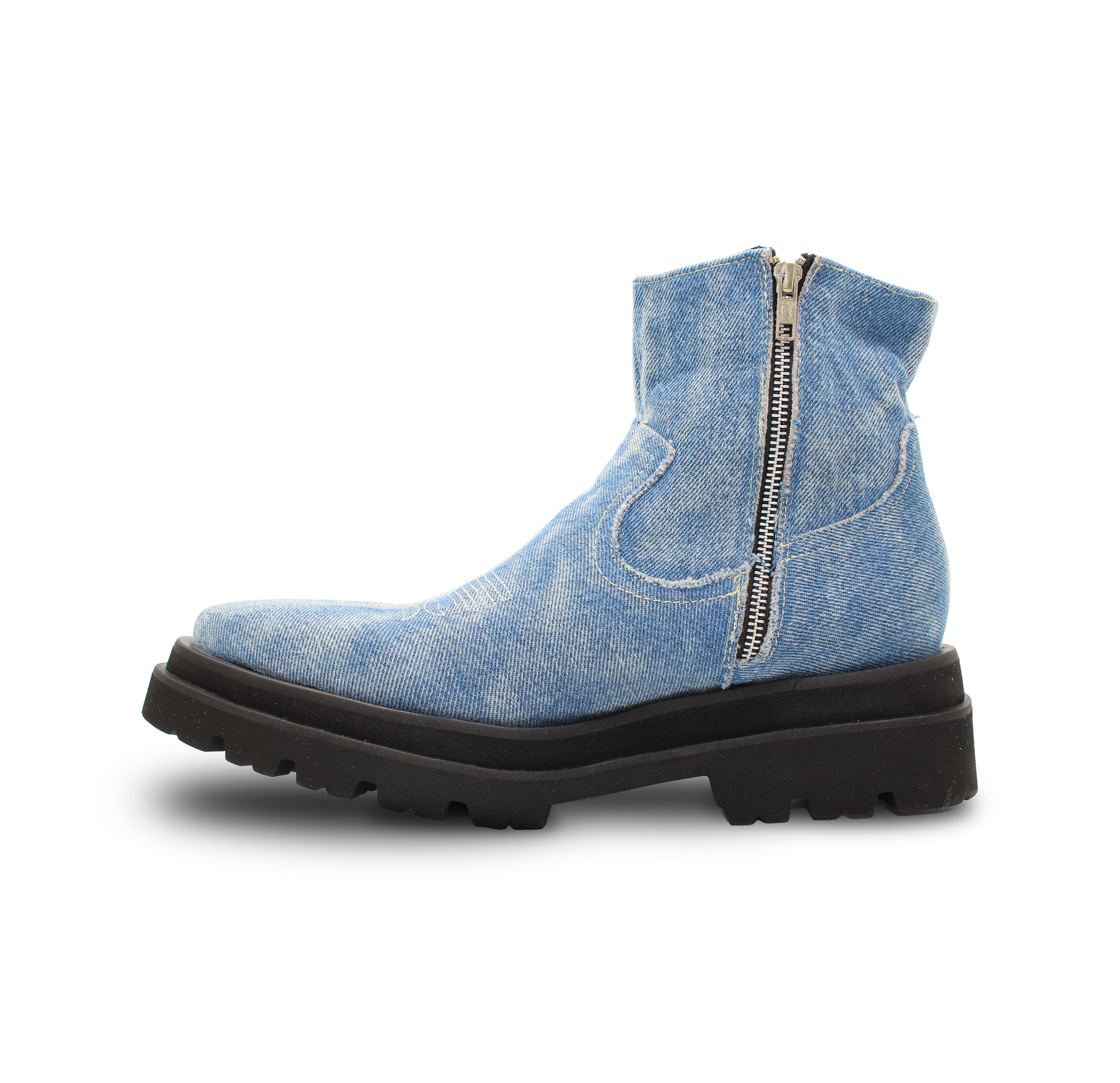 Esta bota estilo country rompe esquemas con una propuesta audaz: mezclilla deslavada que evoca libertad, caminos polvorientos y espíritu rebelde. Su cierre lateral aporta funcionalidad y un toque contemporáneo, mientras que la suela chunky con tecnología ultraligera redefine el confort sin perder carácter.