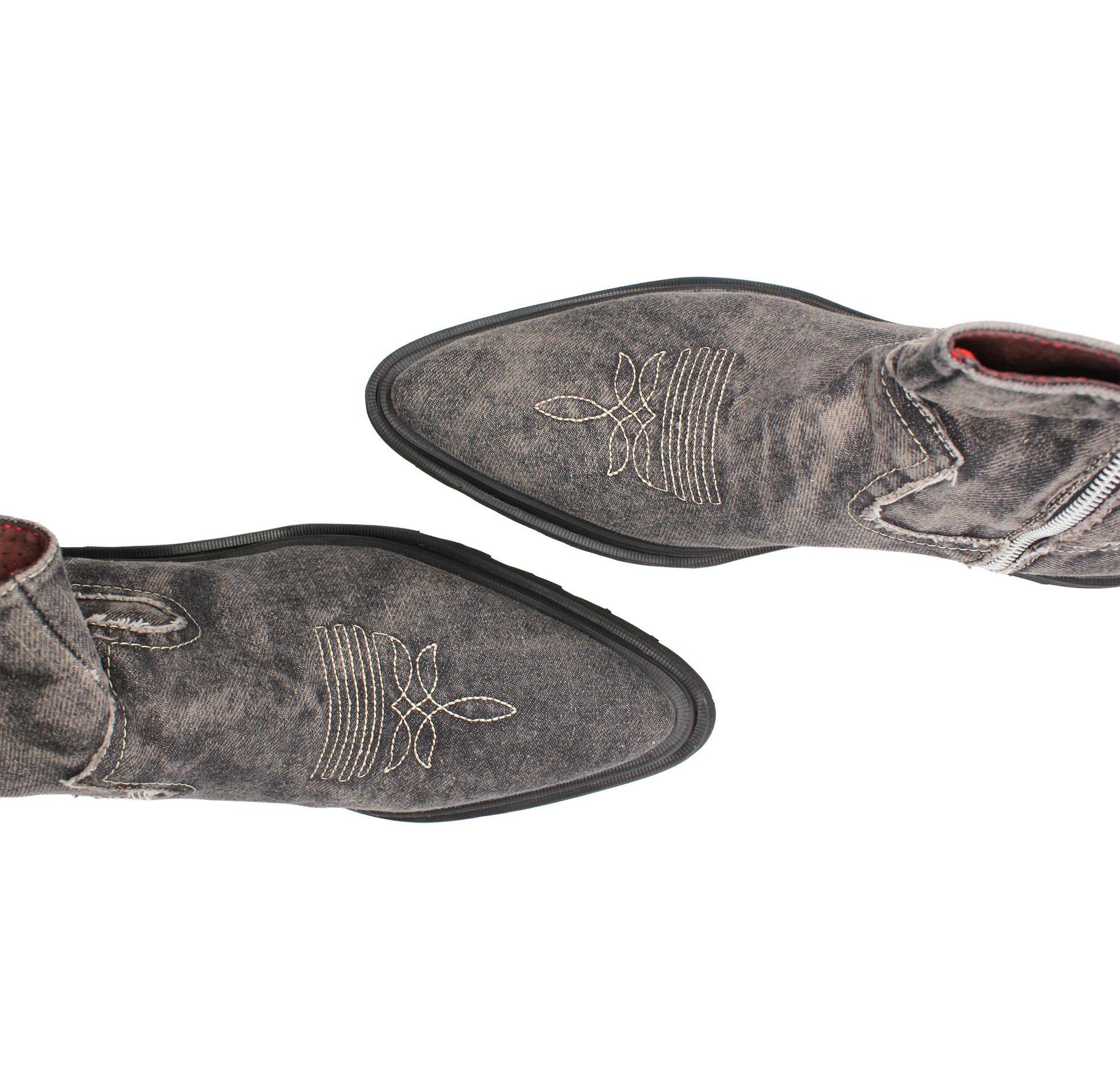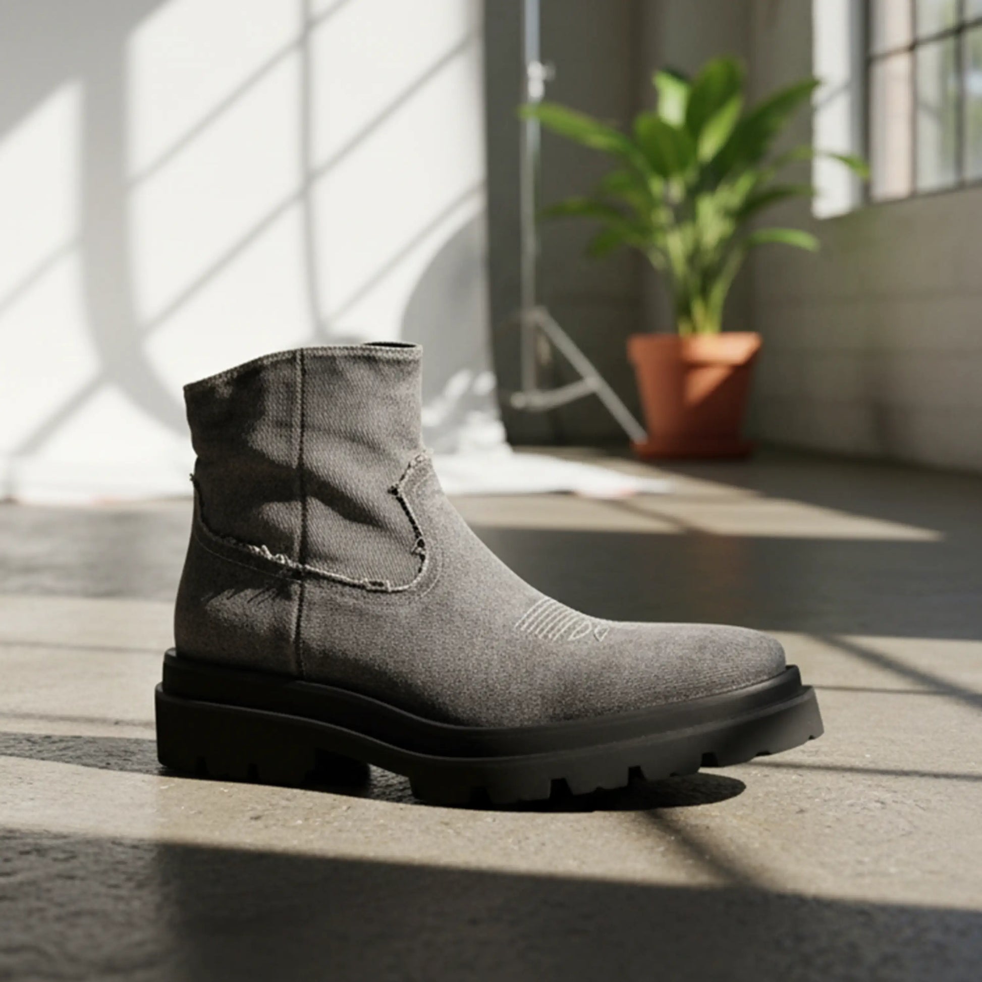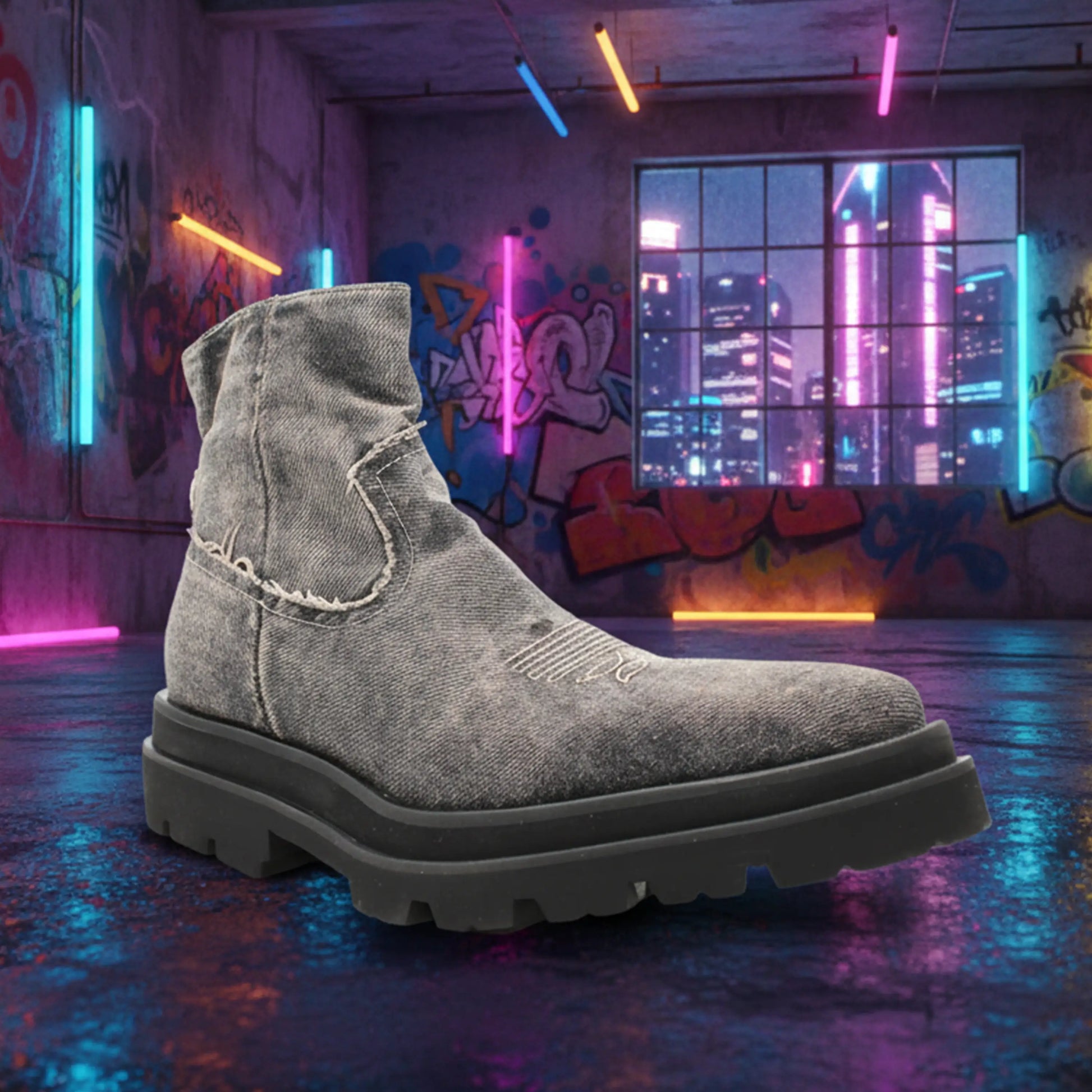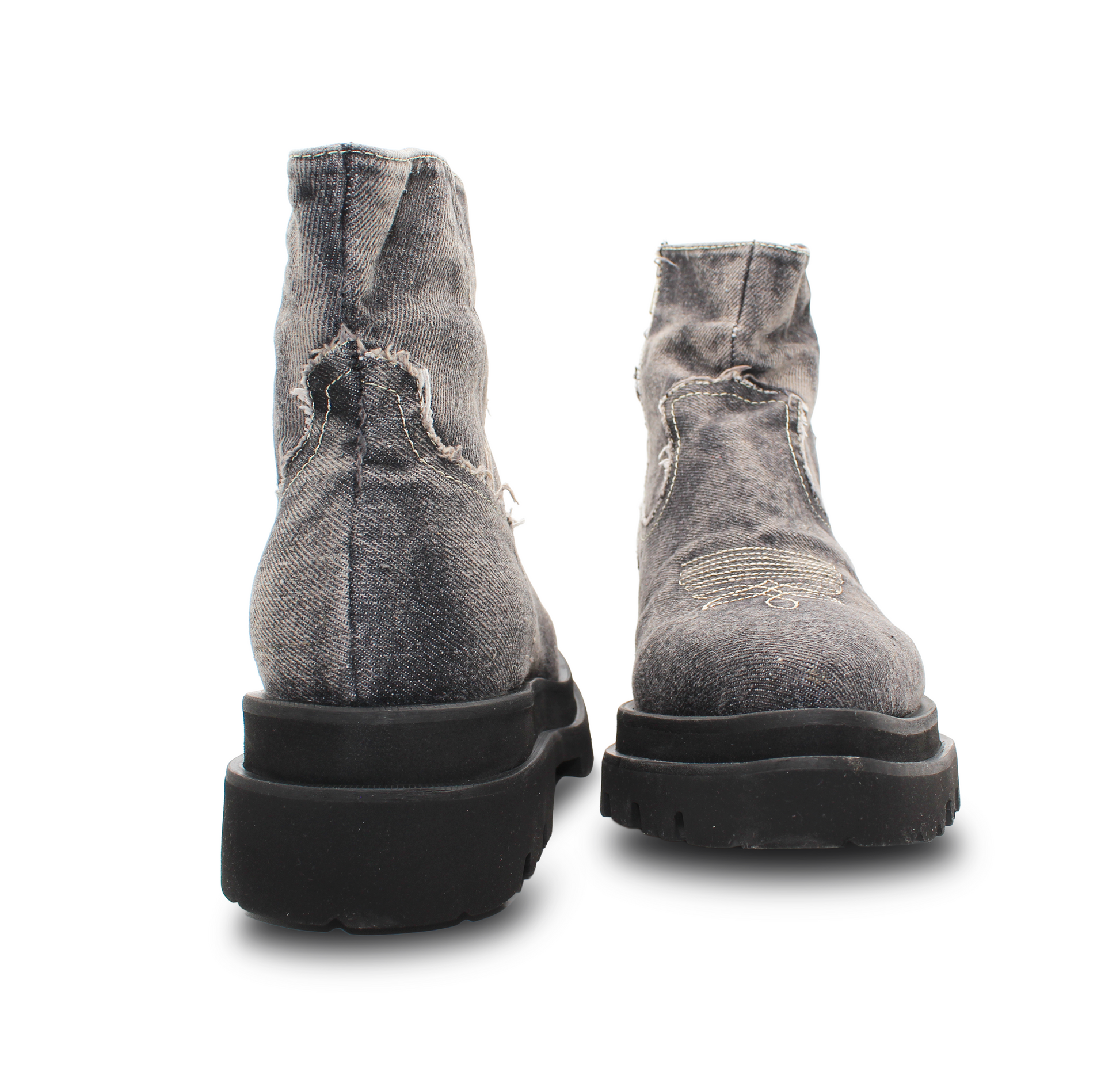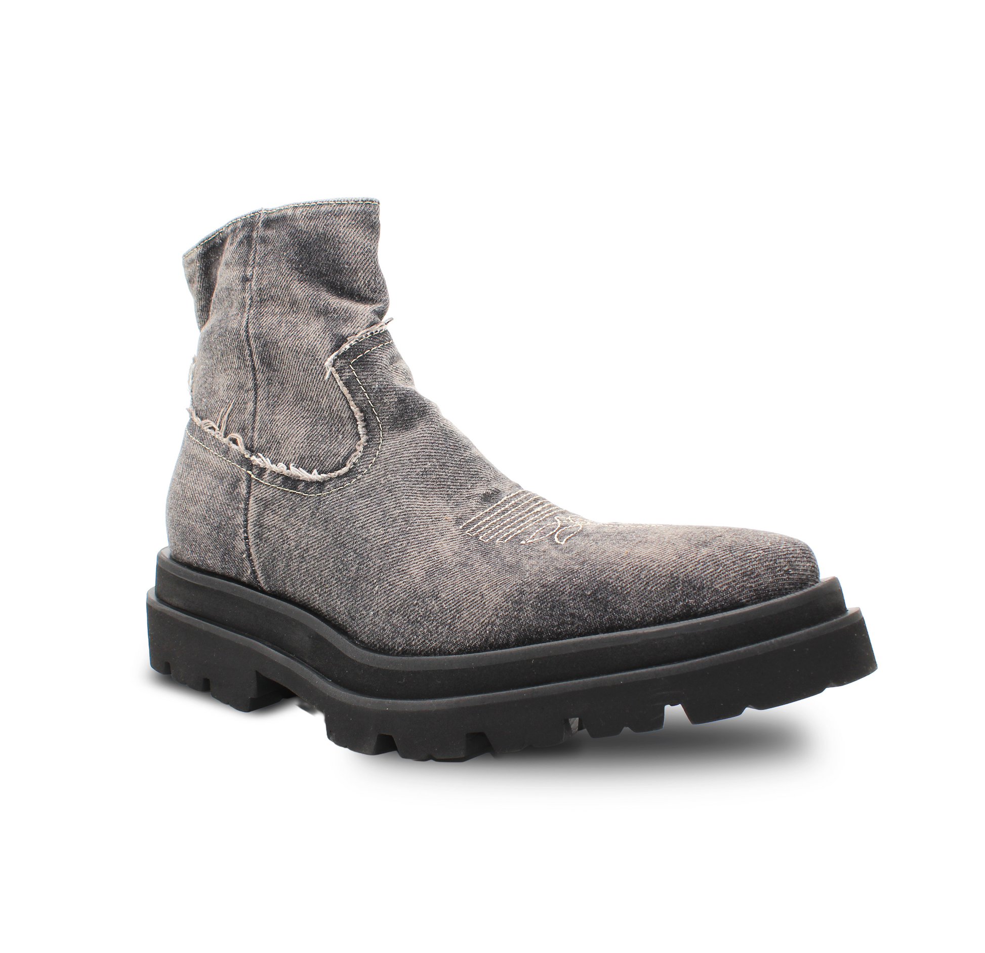La mezclilla negra le da a esta bota un aire de misterio y sofisticación, sin perder su esencia rústica. Su cierre lateral aporta practicidad y un toque moderno, mientras que la suela chunky con tecnología ultraligera transforma cada paso en una experiencia de confort y estilo.