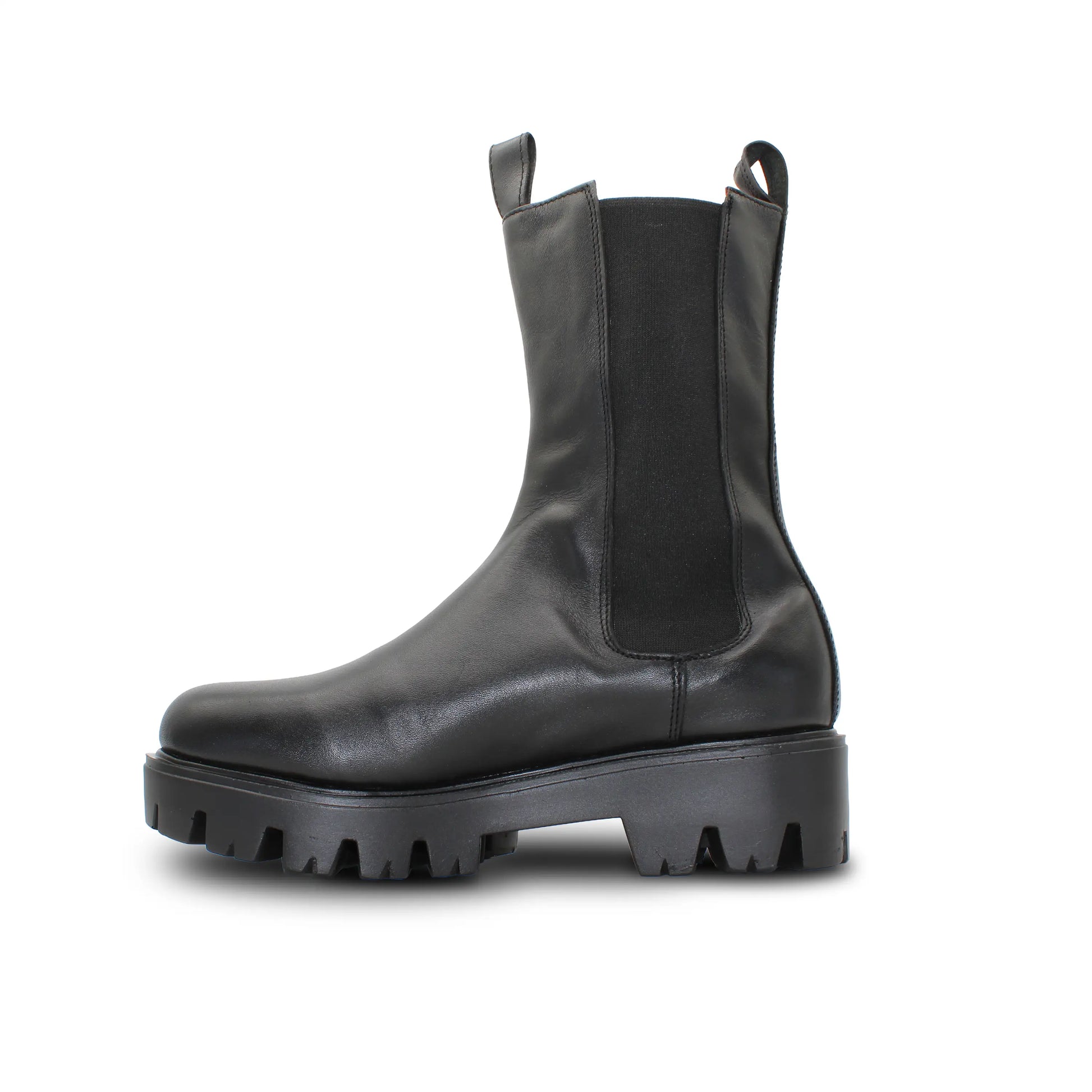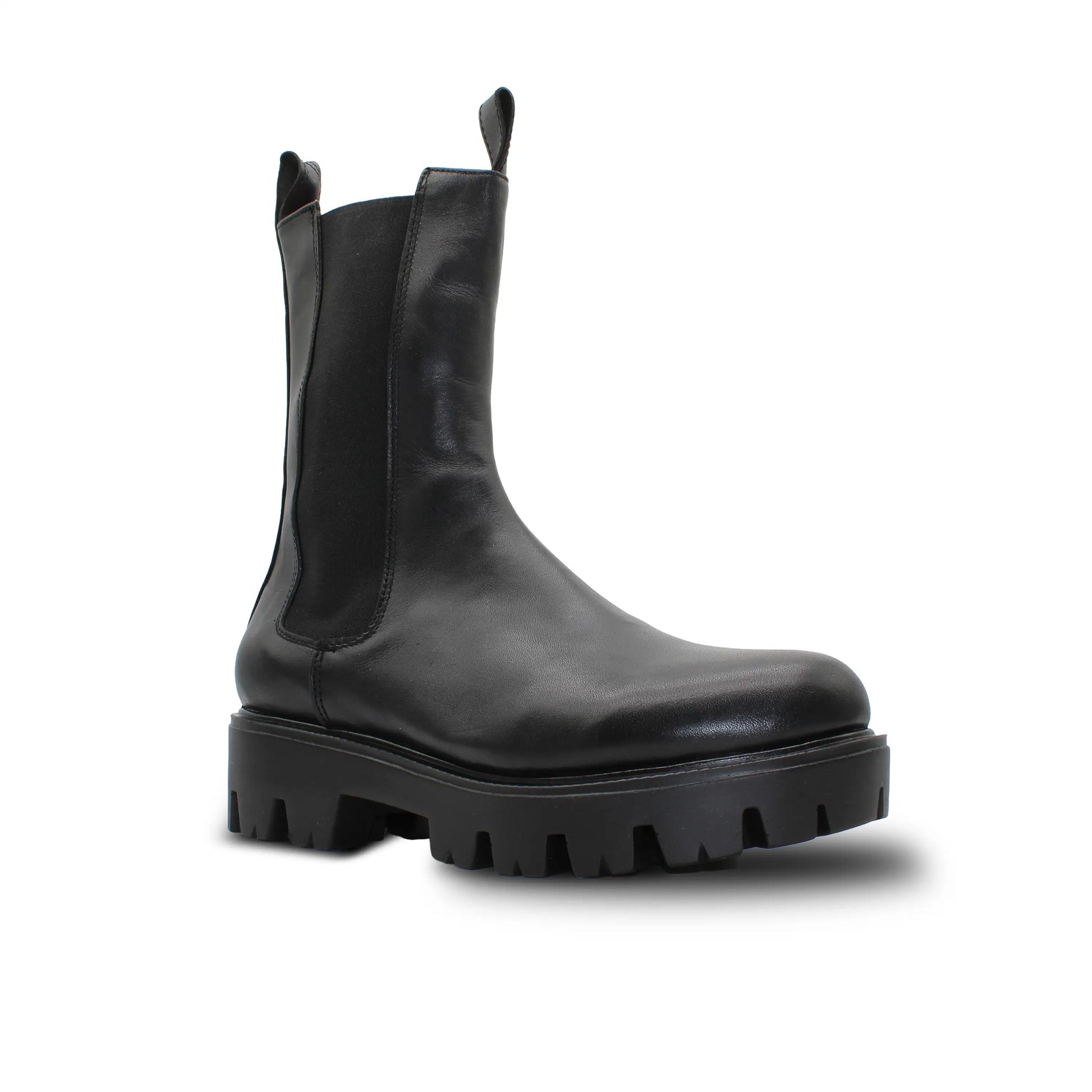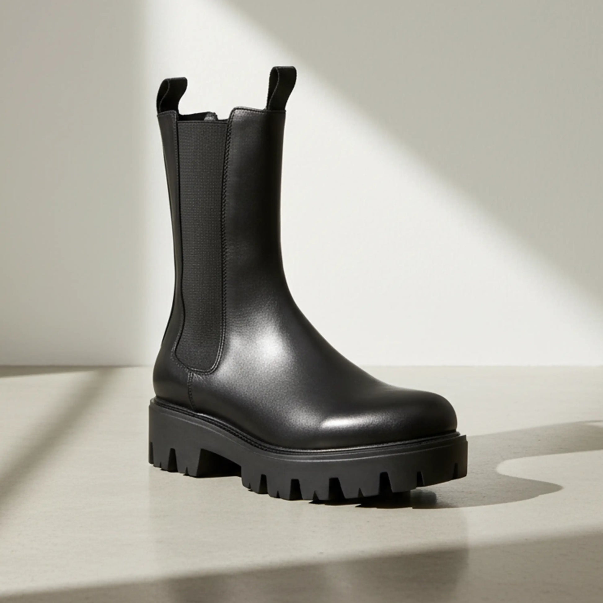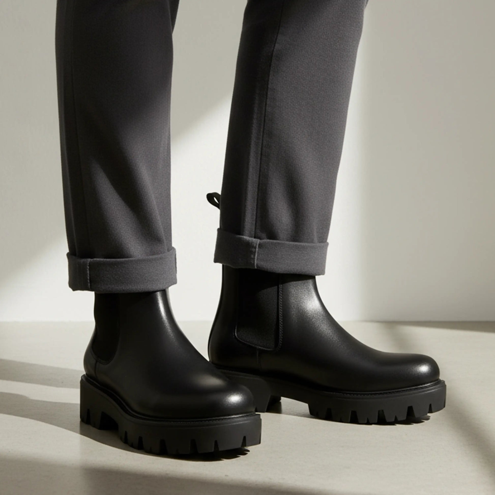 Diseño urbano, alma artesanal. Esta bota Chelsea negra fusiona elegancia minimalista con carácter robusto. Fabricada en piel genuina de alta calidad, su acabado liso y sofisticado contrasta con una suela gruesa tipo tractor que aporta tracción, presencia y estilo. Los paneles elásticos laterales y las tiras de agarre frontal y trasera aseguran un calce cómodo y dinámico, ideal para quienes viven con paso firme.