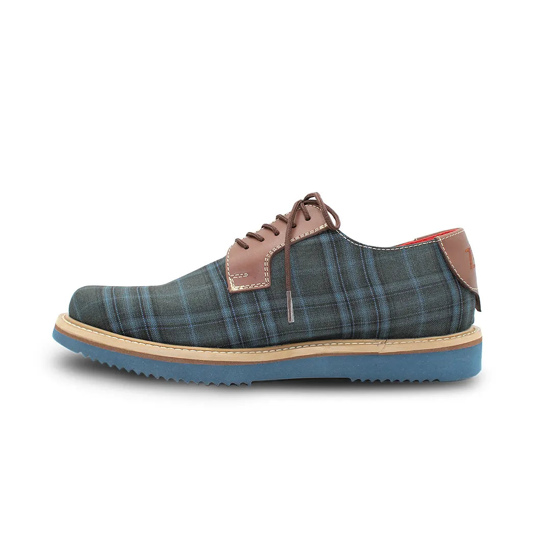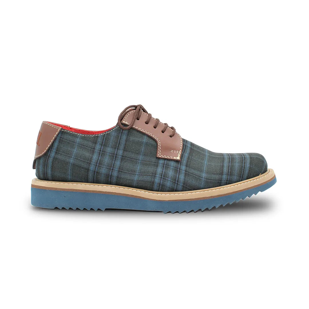 Título para Shopify: Zapato Derby Hombre Escocés Café Verde - Textil Jacquard - Calzado Zull
