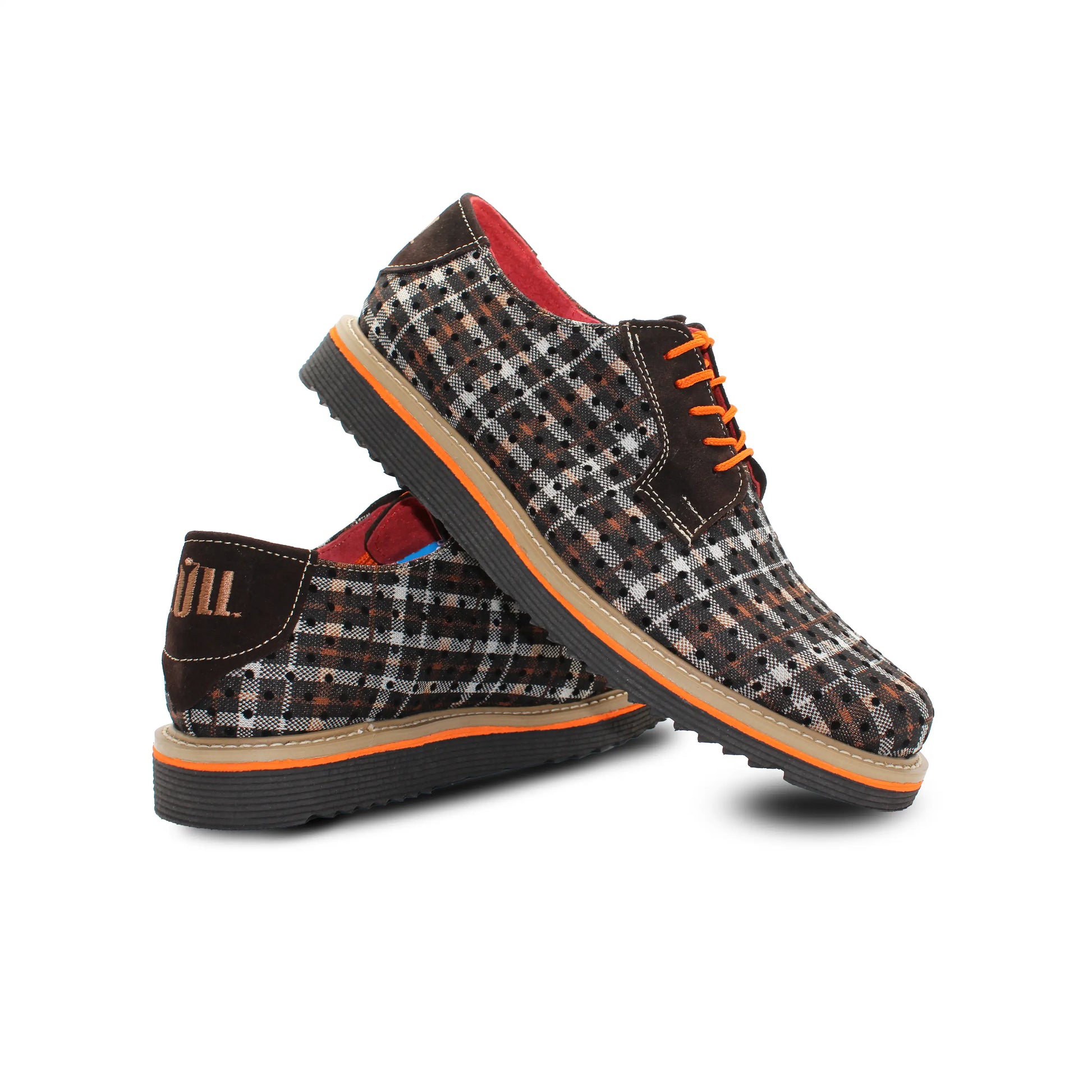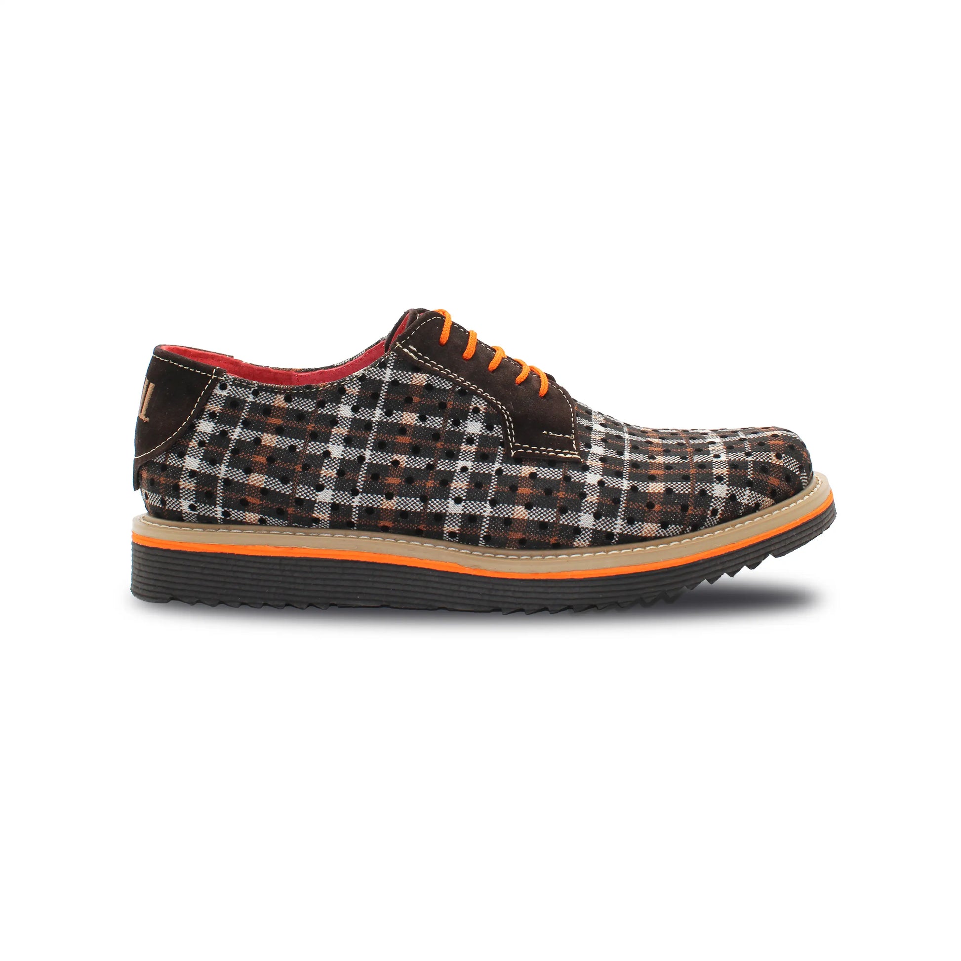 El RA-04 Milano Café combina un patrón tipo gales en tonos café, negro y beige con detalles modernos que elevan cualquier look. Sus agujetas naranja vibrante añaden un contraste fresco y sofisticado, logrando un estilo que destaca sin esfuerzo.