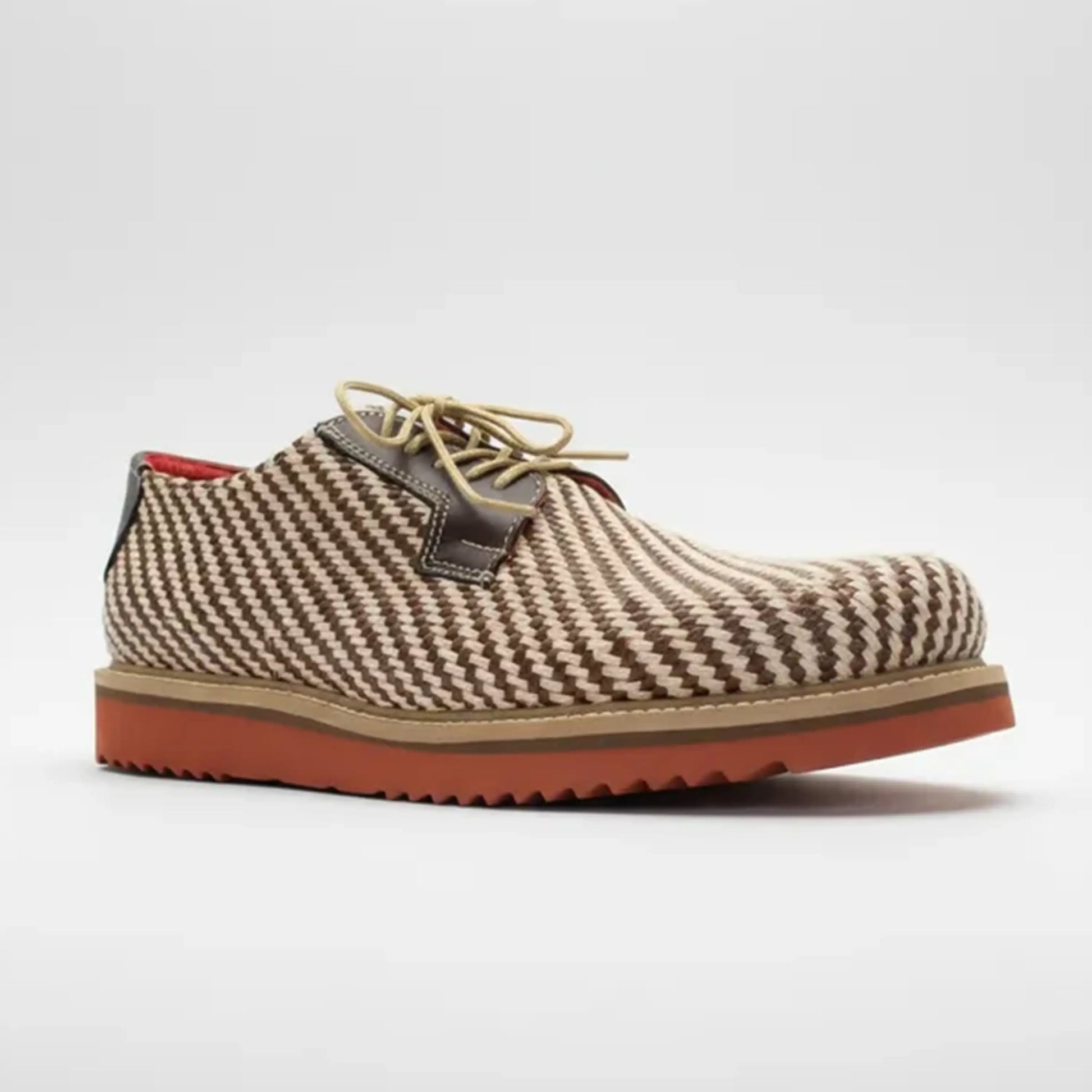 El Wellington Beige es un calzado diseñado para quienes buscan un equilibrio entre elegancia y comodidad. Su corte en textil tejido con patrón entrelazado combina tonos beige y café que evocan un estilo sofisticado y versátil.